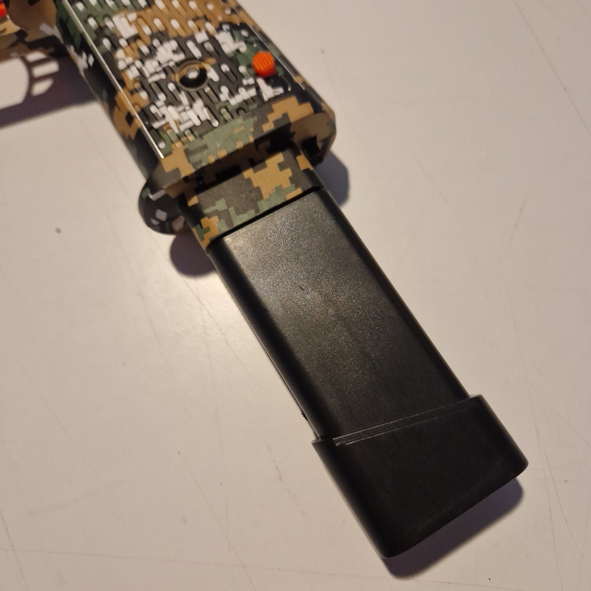 Ett uppladdningsbart batteri medföljer till alla våra gelblasters. Batteriet kan hålla i upp till 4 timmar.