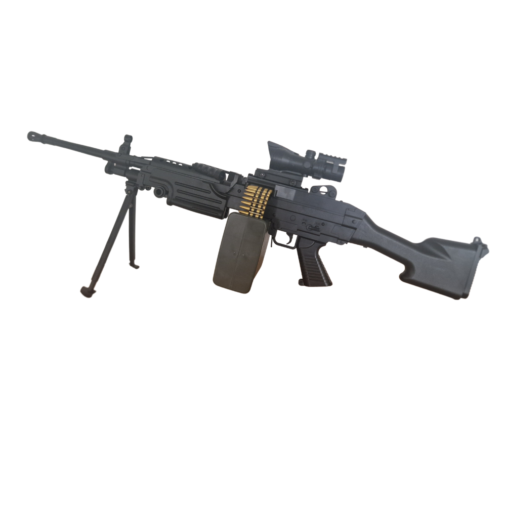 Introducerar M249 gelblaster från Gelzone. Denna kraftfulla och imponerande gelblaster kombinerar överlägsen prestanda med en unik stil, som kommer att göra dig till stjärnan i varje gelblasting-strid.
